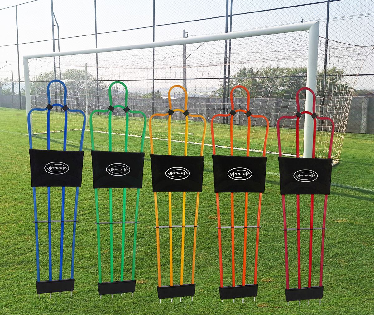 CARACTERÍSTICAS TÉCNICAS: Estrutura em tubo de alumínio com revestimento em tubo de PVC, material extremamente leve e resistente,possui pontos de fixação em gramado (grama natural) posicionado na parte inferior do obstáculo, alta resistência ao impacto gerado pelos chutes, disponivel nas cores Amarelo, Azul, Vermelho, Laranja, Verde.