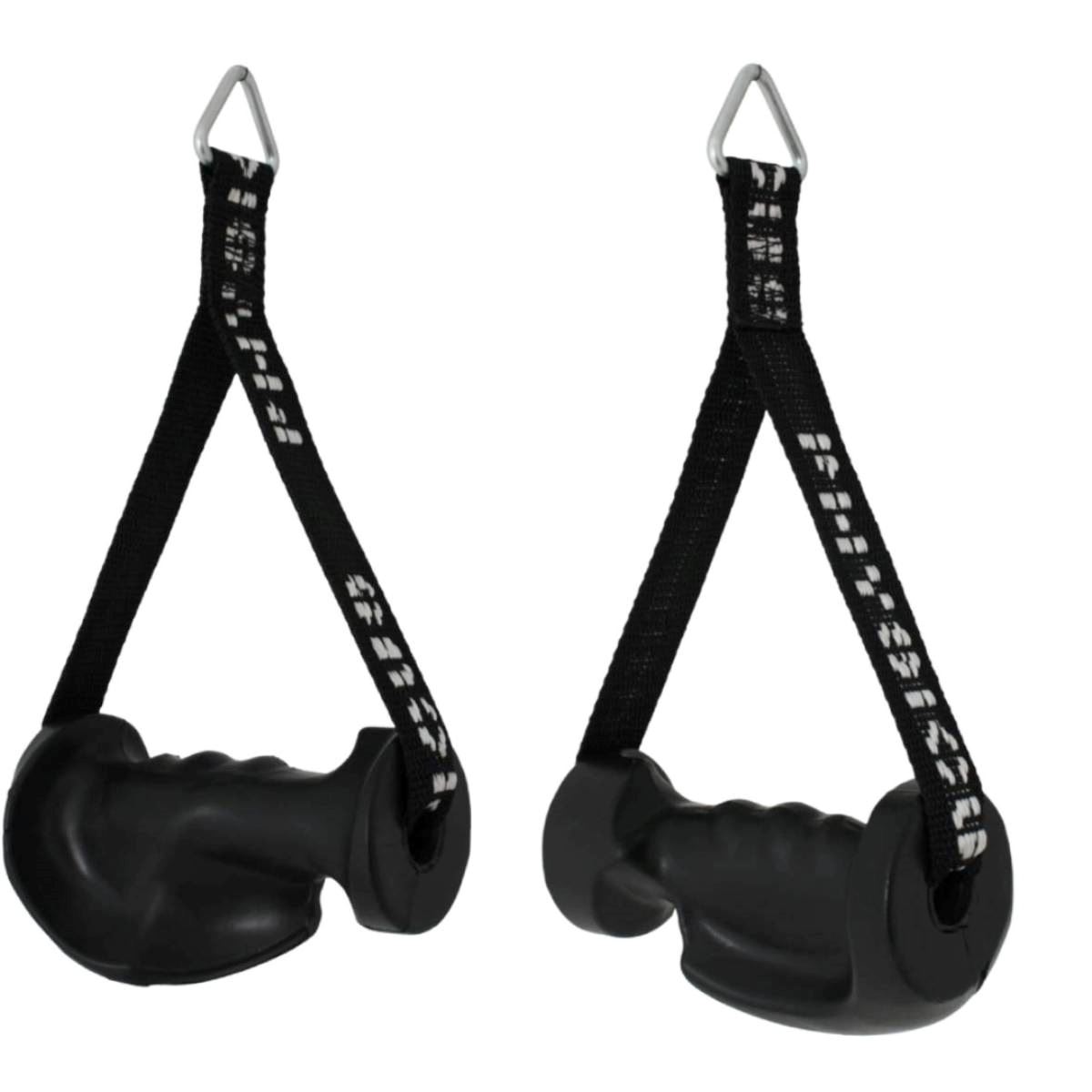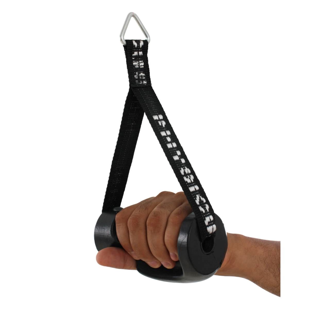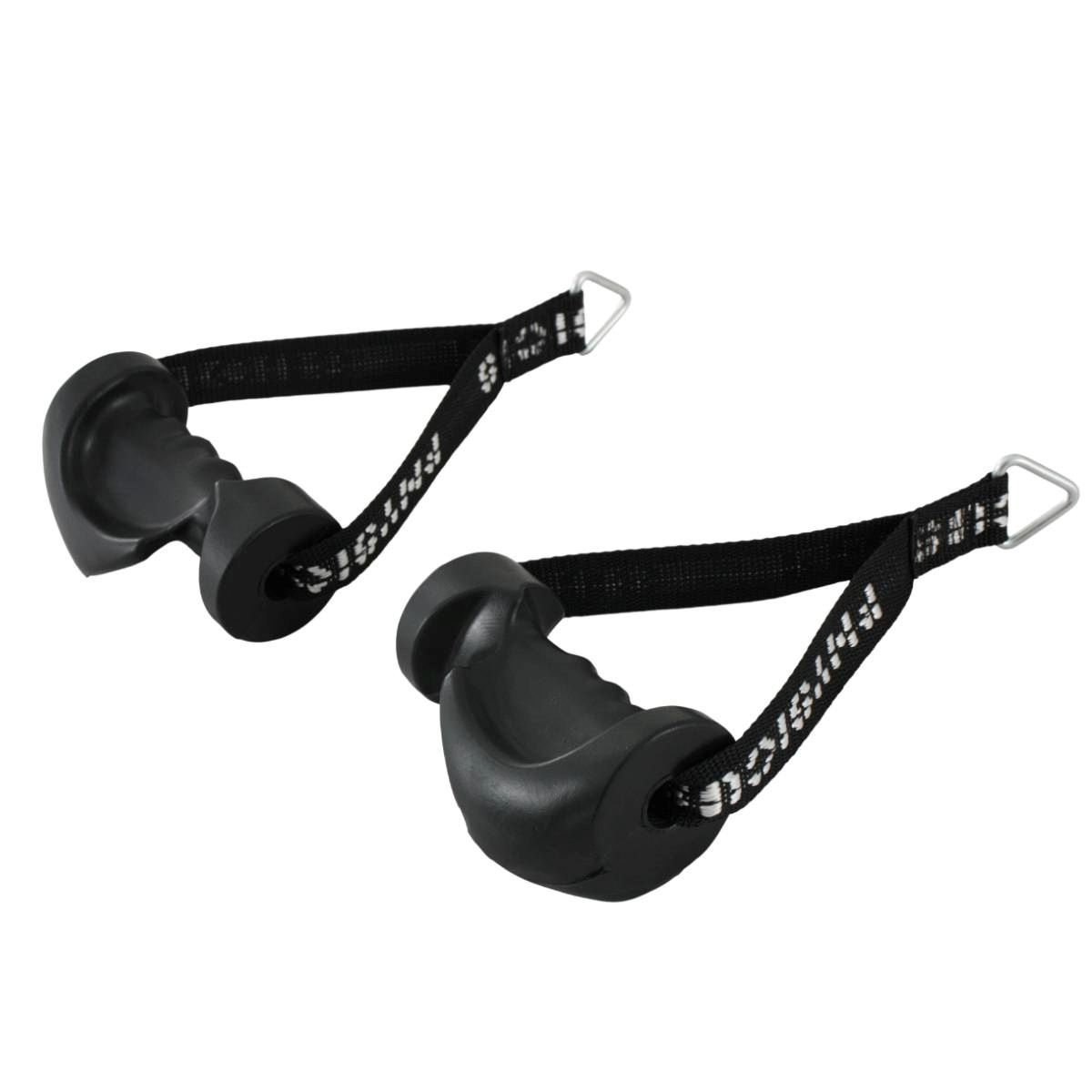 APLICAÇÃO.: Acessório para operações de membros superiores quanto à órbita de equipamentos com bateria de pesos, especialmente polias tais como Cross Over ou Torres Unilaterais. CARACTERÍSTICAS TÉCNICAS.: Fabricado em material sintético de alta resistência, produzido em manoplas injetadas em borracha com acabamento anatômico, possui dispositivo para acoplar ao cabo do equipamento.
